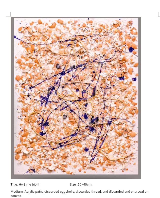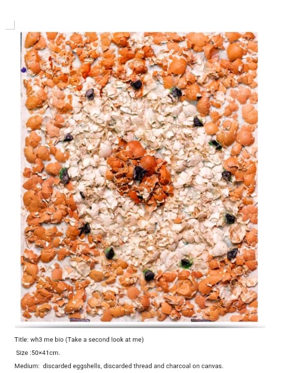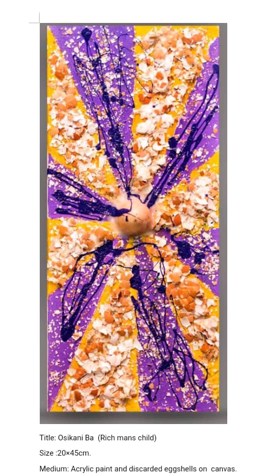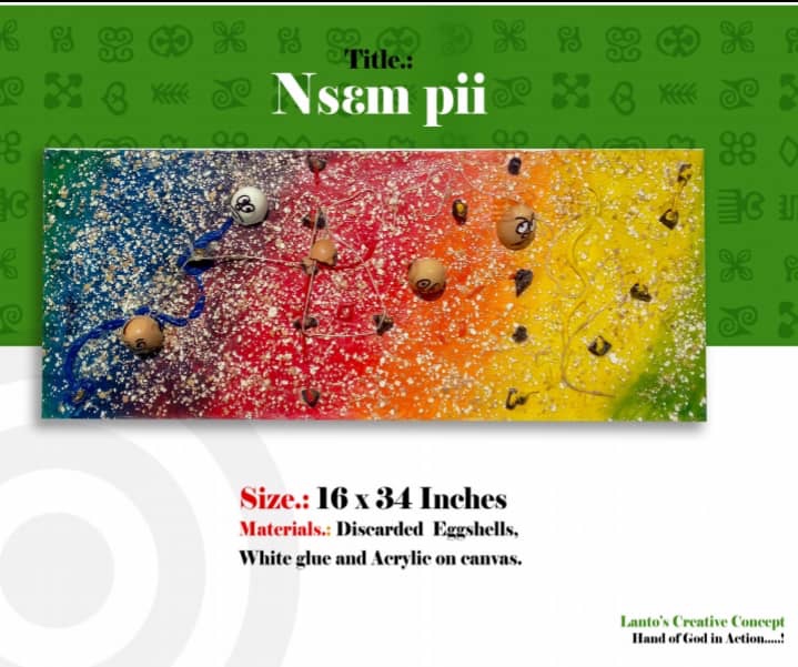 Award winning creative artist, Azasime Kwame Lanto is a confident, talented and ambitious young creative genius from Ghana, who is currently taking over the art scene in Africa. He is known to combining discarded eggshells (which he gathers from food vendors and waste sites— and of course he processes them) with acrylic paint and an adhesive(white glue) to creating magical pieces on a canvas. Mind blowing! Isn’t it?