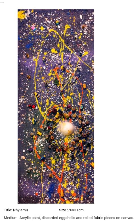 These mind boggling artworks showcased below are masterpieces, as well as my favorites, which have been given unique local names by the Art genius. He also indicates the medium used in executing all of the seven artworks displayed in this blog.
